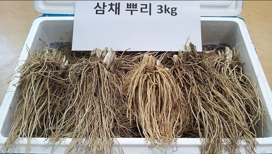 개구리 엑기스 1박스에 삼채뿌리 3kg가 들어갑니다.